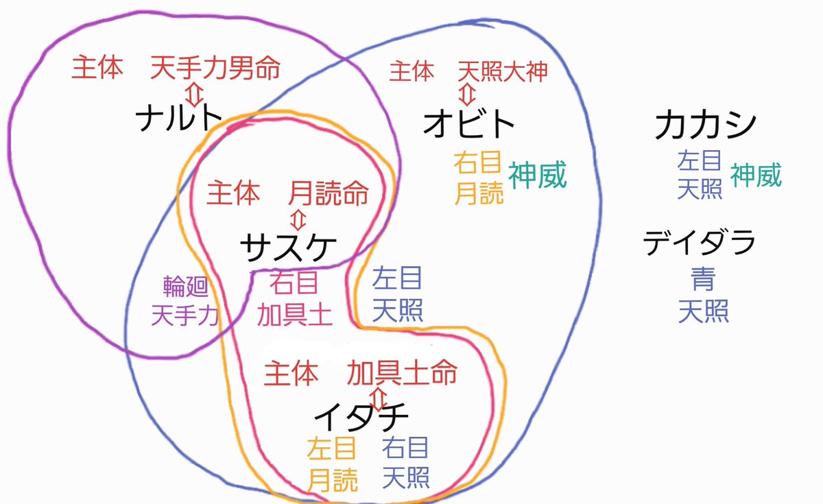 相関図 闇落ち 木の葉6世代 マダラ ダンゾウ 大蛇丸 長門 オビト サスケ Z